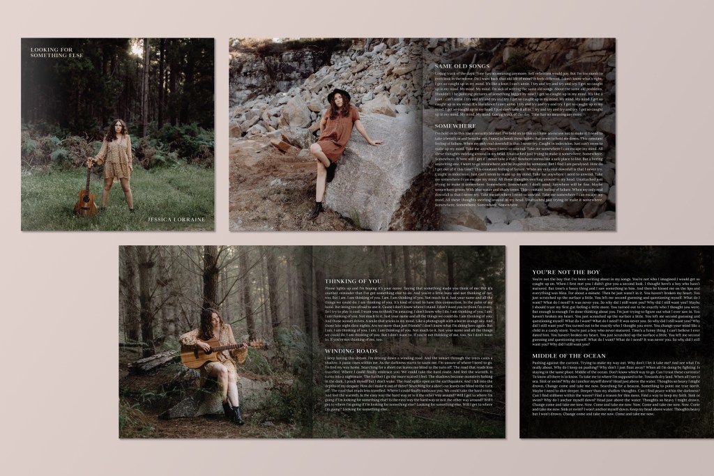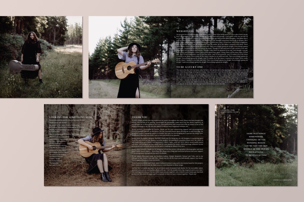 For Jessica Lorraine’s record Looking For Something Else, I had the privilege of designing the digi case artwork and the album booklet.